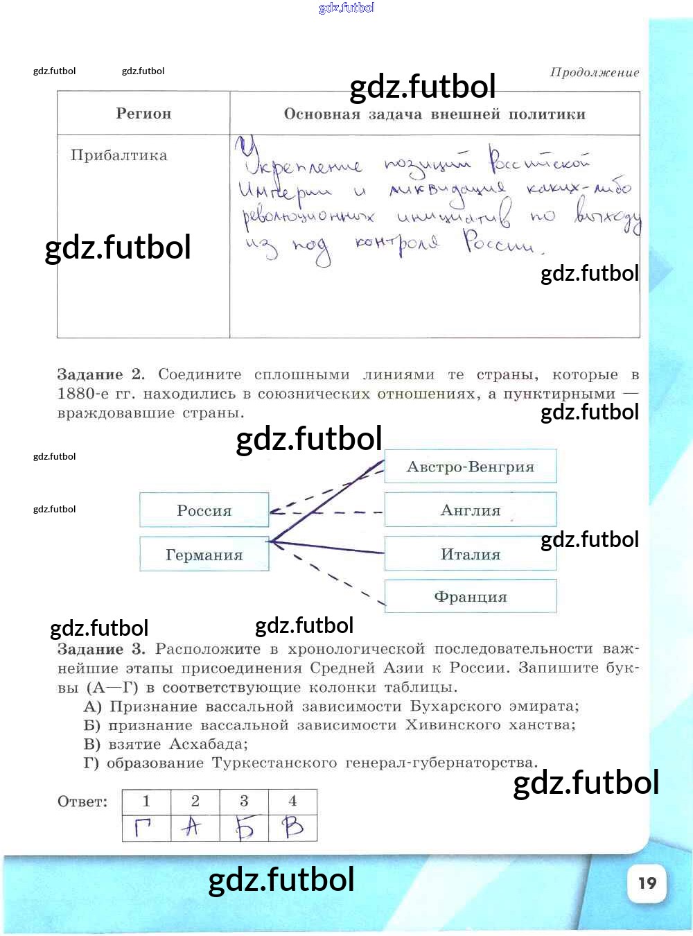 Готовые домашние задания по Истории за 9 класс Данилов Рабочая тетрадь УМК 2017 ФГОС - Часть 2. Страницы 19