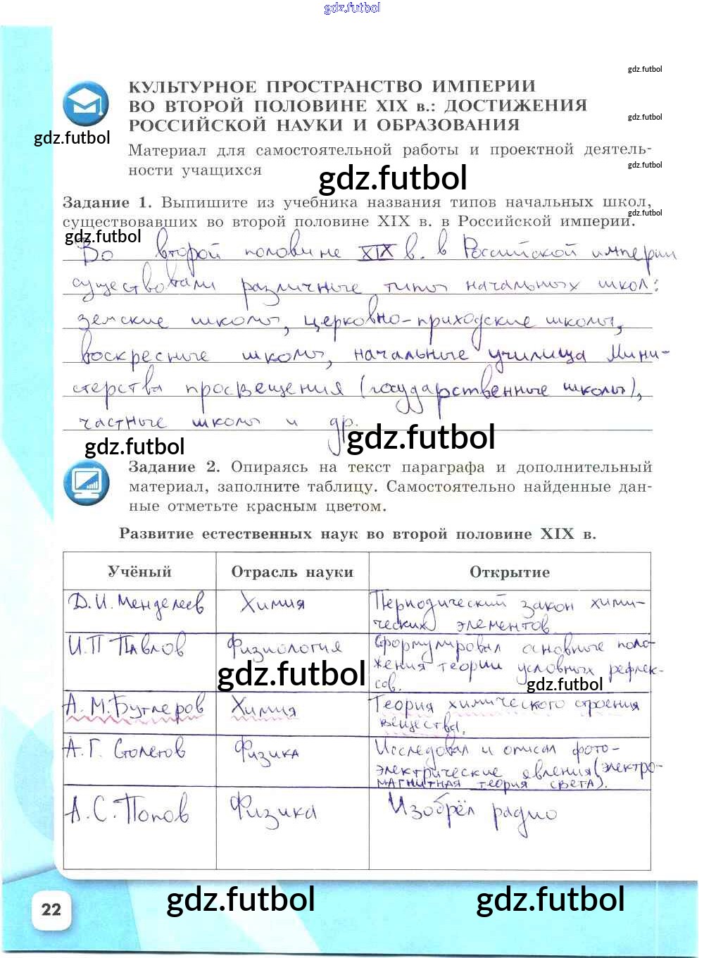 Готовые домашние задания по Истории за 9 класс Данилов Рабочая тетрадь УМК 2017 ФГОС - Часть 2. Страницы 22
