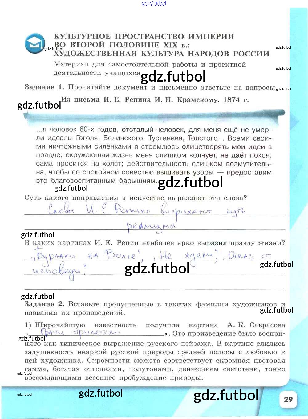 Готовые домашние задания по Истории за 9 класс Данилов Рабочая тетрадь УМК 2017 ФГОС - Часть 2. Страницы 29