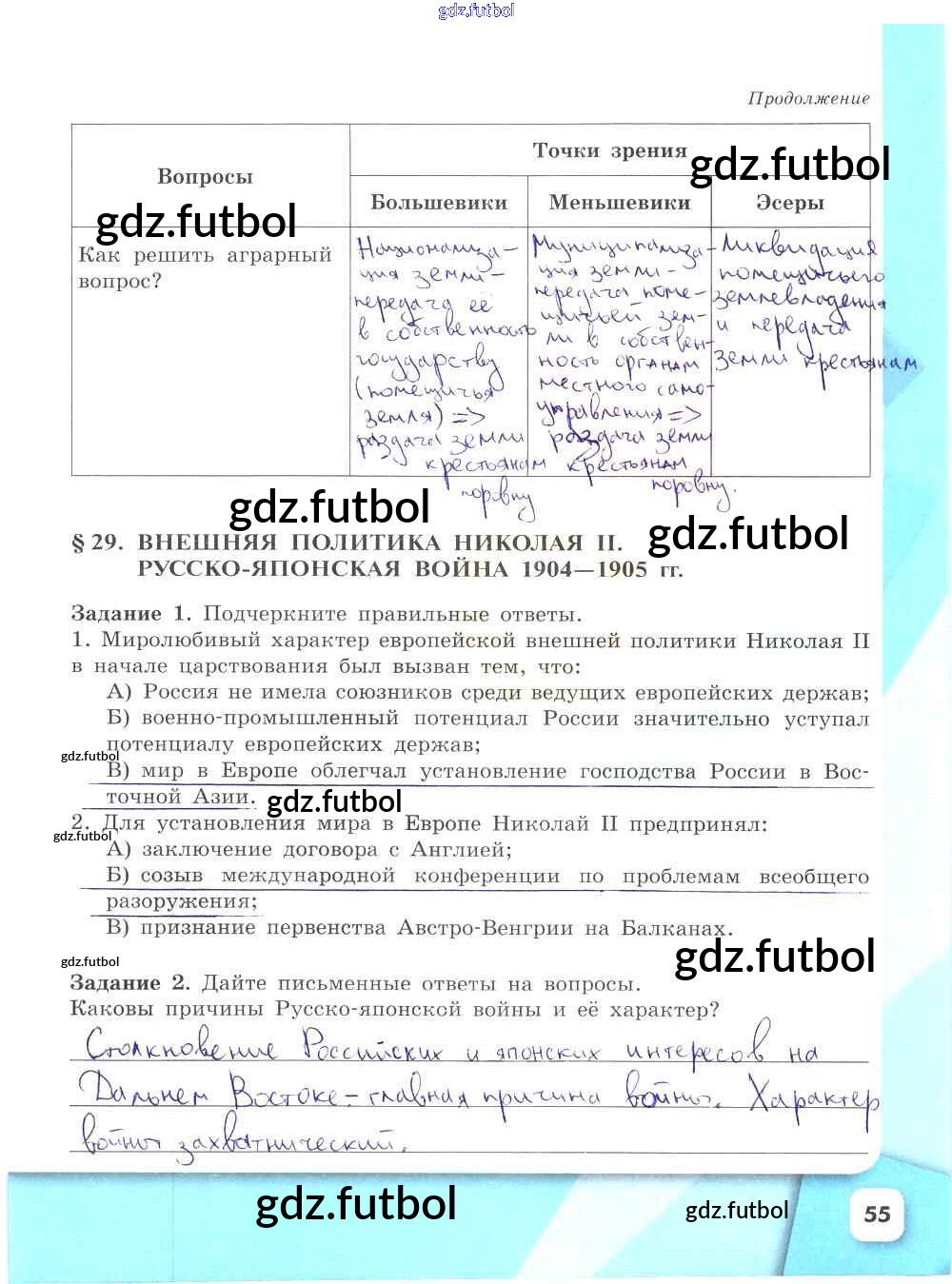 Готовые домашние задания по Истории за 9 класс Данилов Рабочая тетрадь УМК 2017 ФГОС - Часть 2. Страницы 55