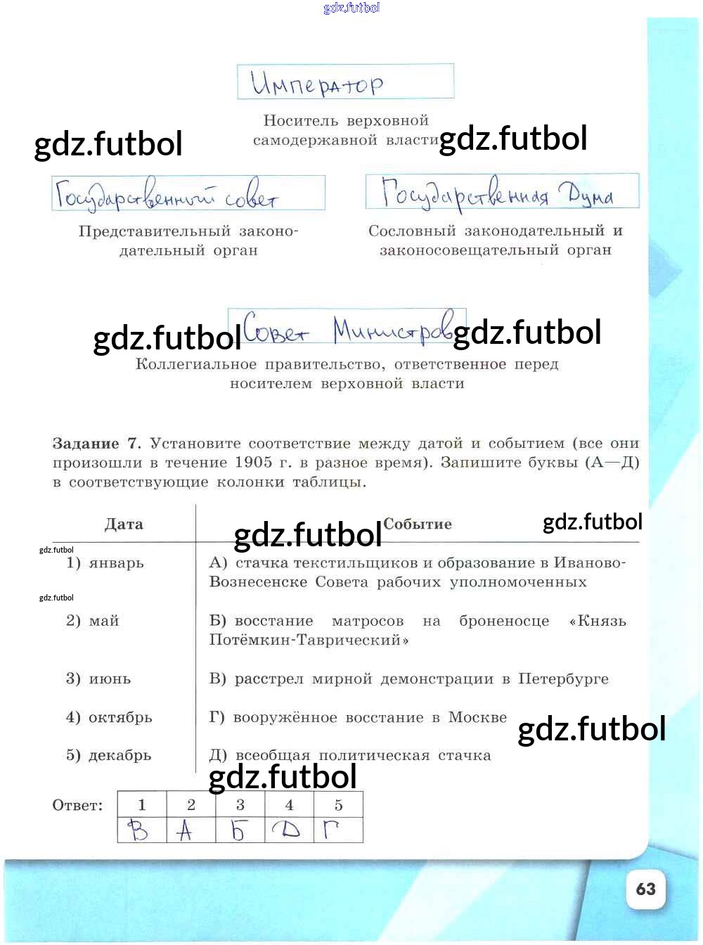 Готовые домашние задания по Истории за 9 класс Данилов Рабочая тетрадь УМК 2017 ФГОС - Часть 2. Страницы 63