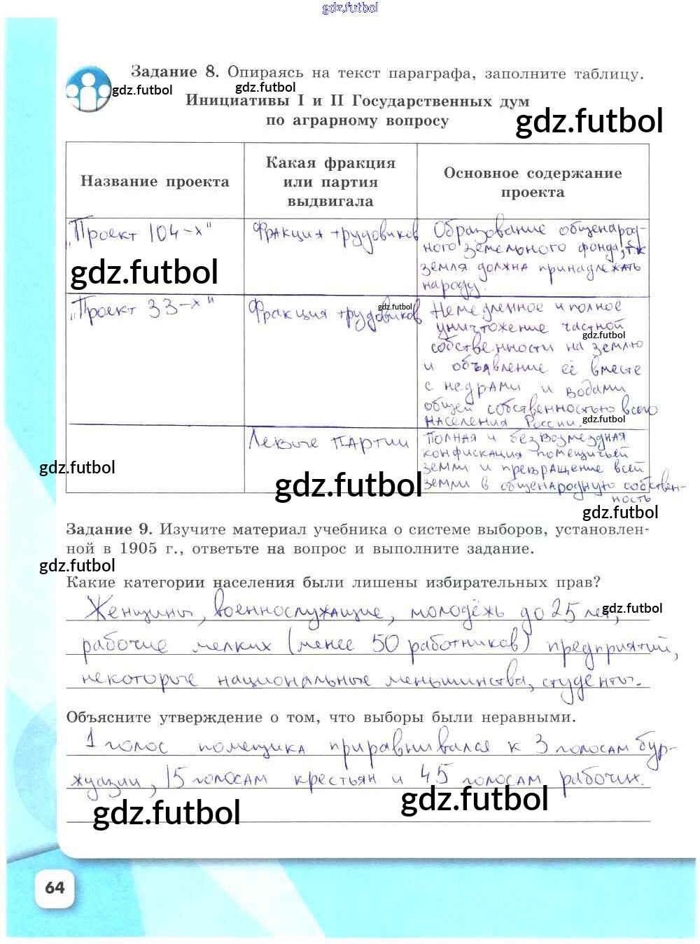 Готовые домашние задания по Истории за 9 класс Данилов Рабочая тетрадь УМК 2017 ФГОС - Часть 2. Страницы 64