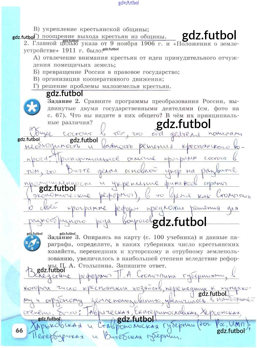 Готовые домашние задания по Истории за 9 класс Данилов Рабочая тетрадь УМК 2017 ФГОС - Часть 2. Страницы 66