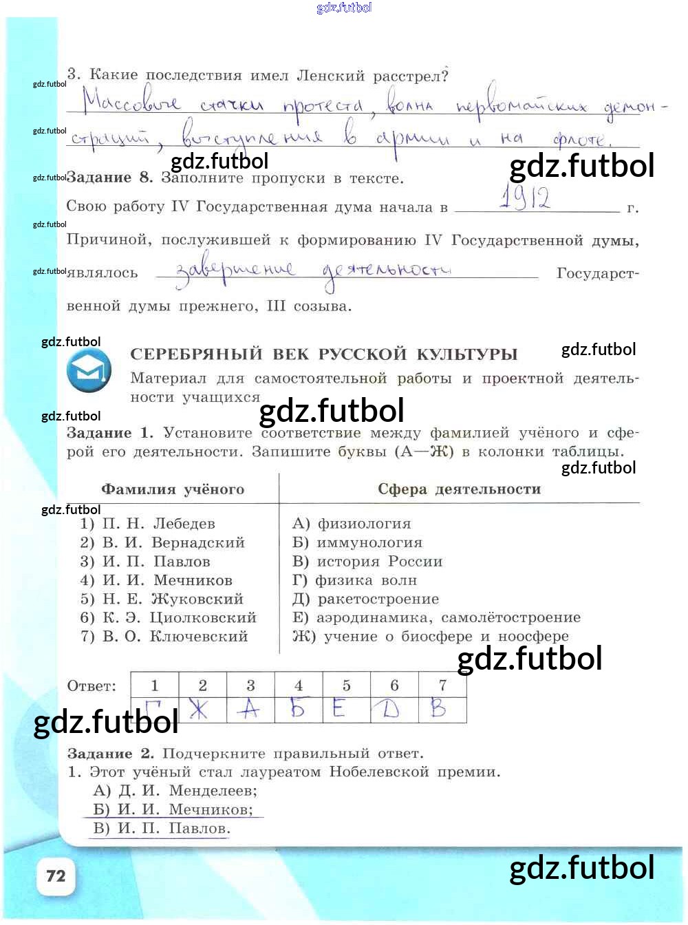 Готовые домашние задания по Истории за 9 класс Данилов Рабочая тетрадь УМК 2017 ФГОС - Часть 2. Страницы 72