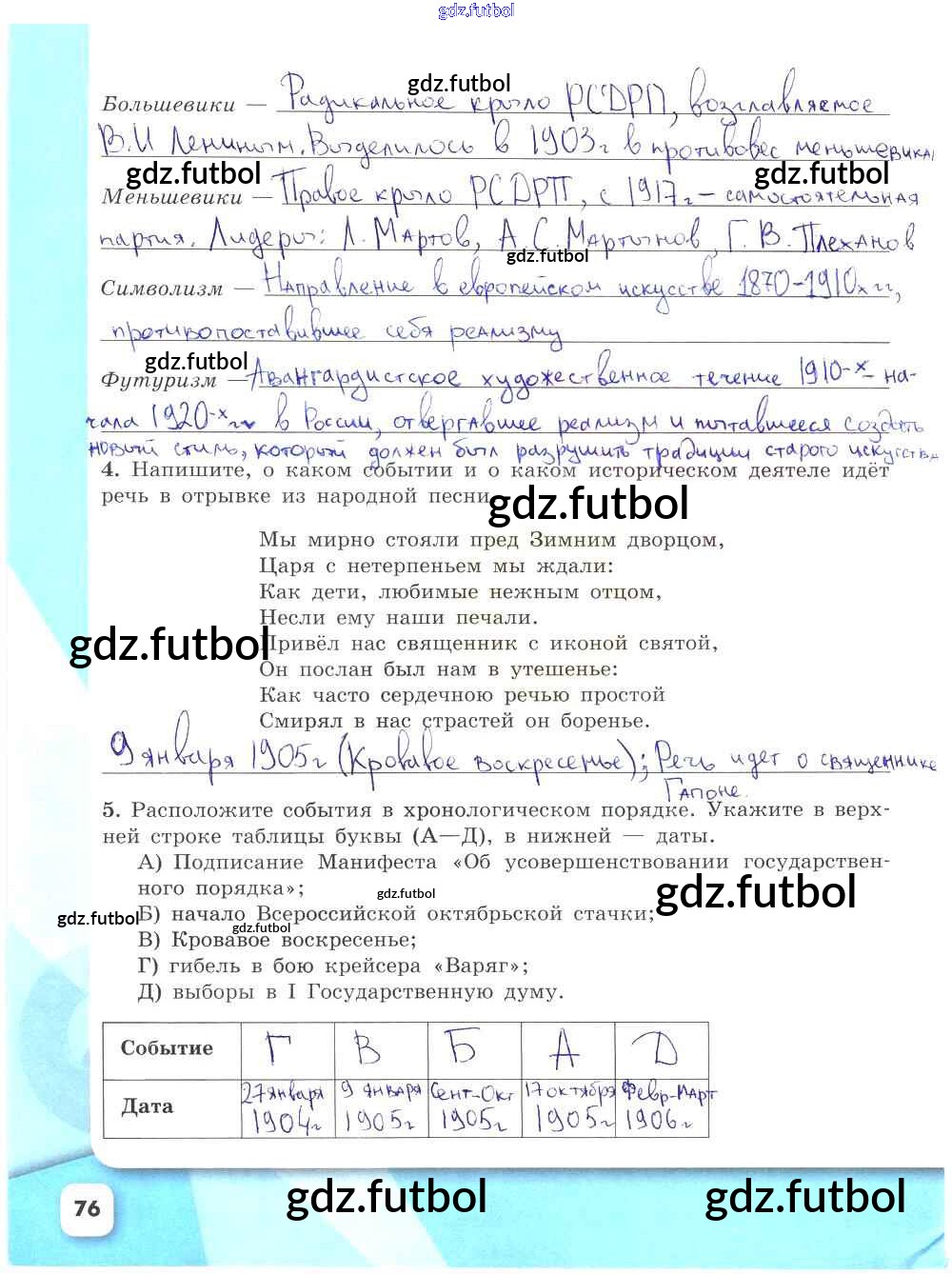 Готовые домашние задания по Истории за 9 класс Данилов Рабочая тетрадь УМК 2017 ФГОС - Часть 2. Страницы 76