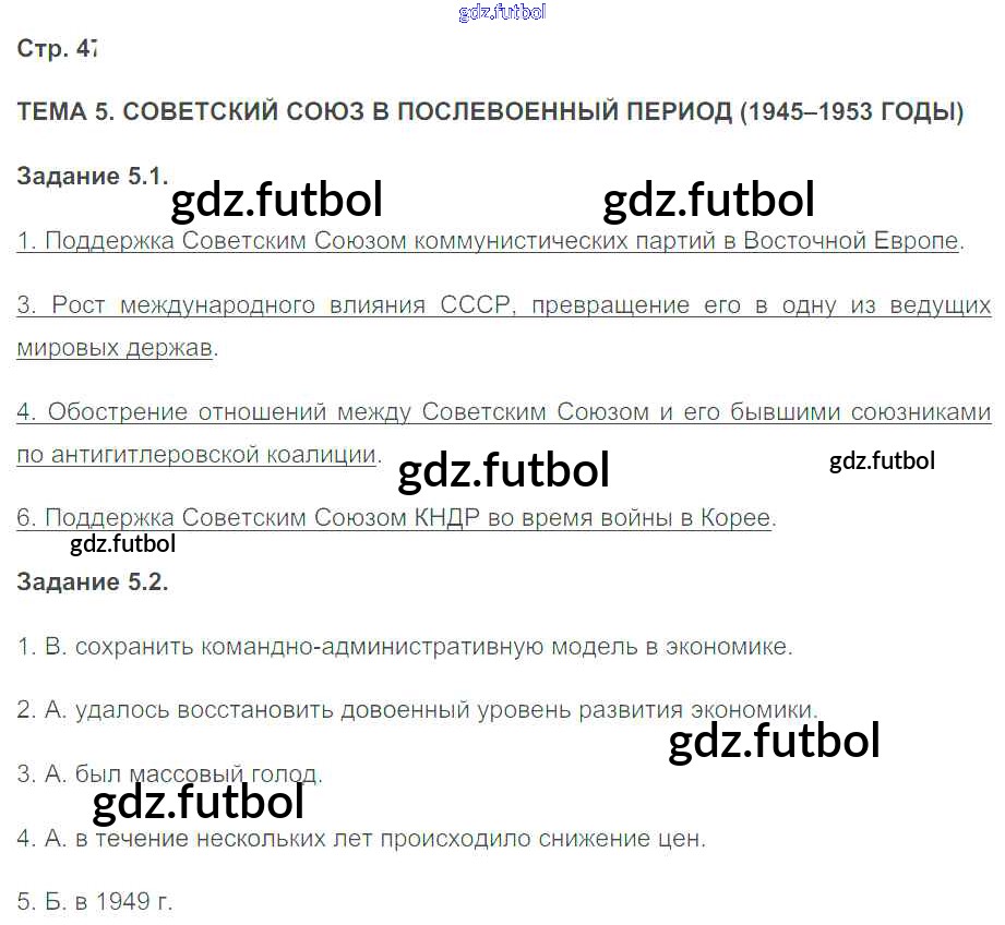 Готовые домашние задания по Истории за 9 класс Симонова Рабочая тетрадь с контурными картами УМК 2014 ФГОС - Страницы 47