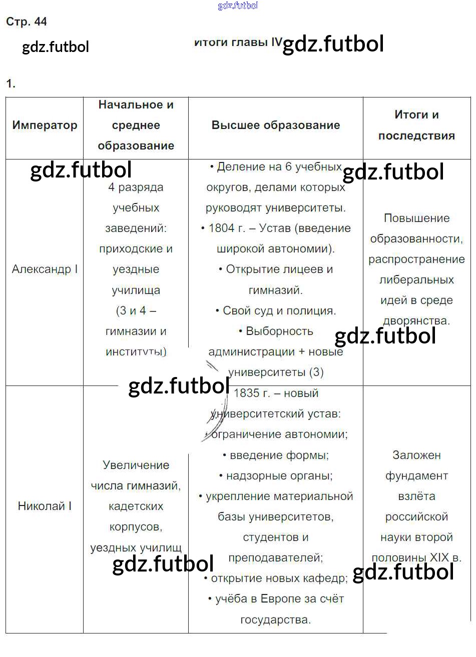 Готовые домашние задания по Истории за 9 класс Симонова Рабочая тетрадь Вертикаль 2017 ФГОС - Страницы 44