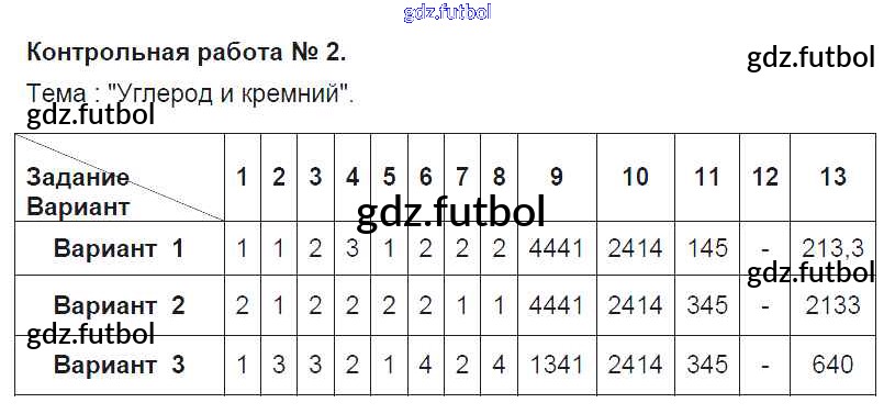 Готовые домашние задания по Химии за 9 класс Боровских Тесты УМК 2013 ФГОС - Контрольные работы КР-2. Углерод и кремний