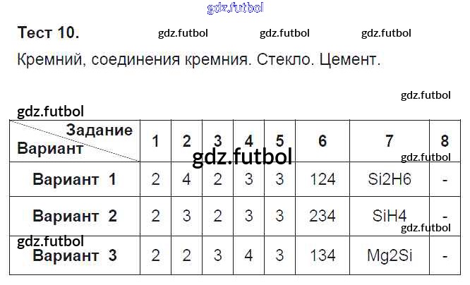 Готовые домашние задания по Химии за 9 класс Боровских Тесты УМК 2013 ФГОС - Тесты Тест-10. Кремний, соединения кремния. Стекло. Цемент