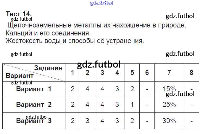 Готовые домашние задания по Химии за 9 класс Боровских Тесты УМК 2013 ФГОС - Тесты Тест-14. Кальций и его соединения
