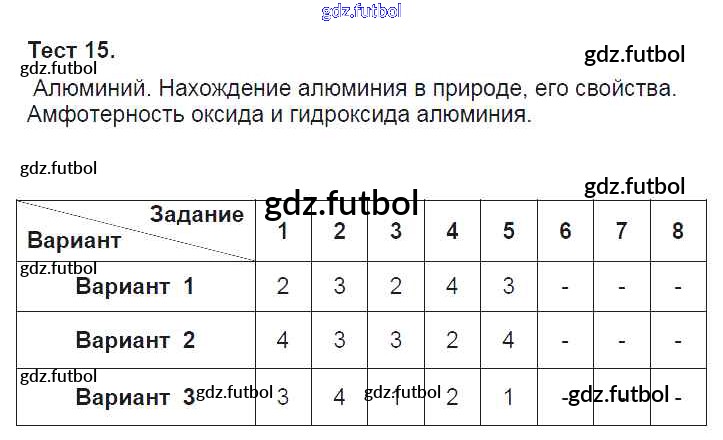 Готовые домашние задания по Химии за 9 класс Боровских Тесты УМК 2013 ФГОС - Тесты Тест-15. Алюминий. Нахождение алюминия в природе, его свойства