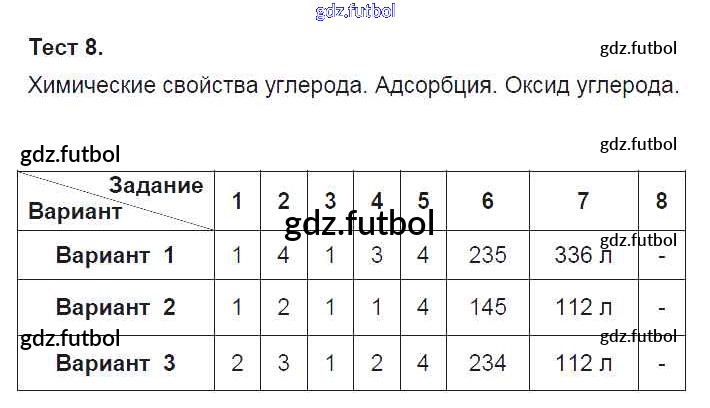 Готовые домашние задания по Химии за 9 класс Боровских Тесты УМК 2013 ФГОС - Тесты Тест-8. Химические свойства углерода. Адсорбция. Оксид углерода