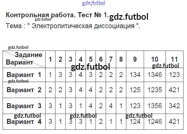 Готовые домашние задания по Химии за 9 класс Боровских Тесты УМК 2013 ФГОС - Контрольные работы КР-1. Электролитическая диссоциация