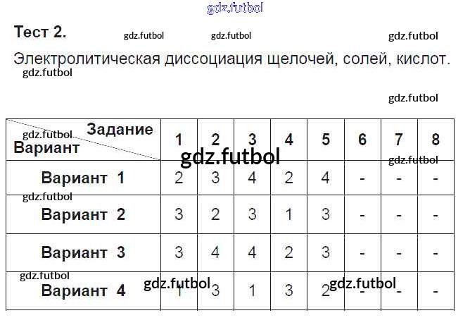 Готовые домашние задания по Химии за 9 класс Боровских Тесты УМК 2013 ФГОС - Тесты Тест-2. Электролитическая диссоциация щелочей, солей, кислот