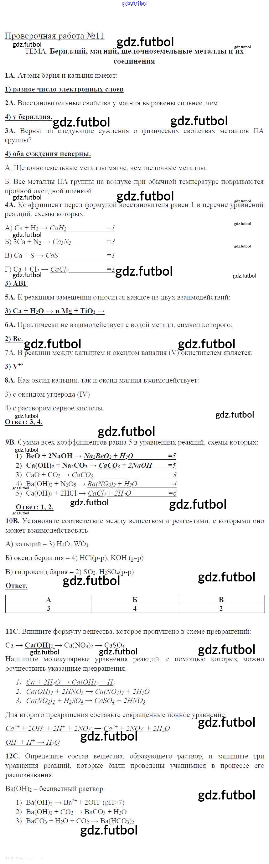 Готовые домашние задания по Химии за 9 класс Габриелян Тетрадь для оценки качества знаний Вертикаль 2017 ФГОС - Проверочные работы ПР-11. Берилий, магний, щелочноземельные металлы и их свойства