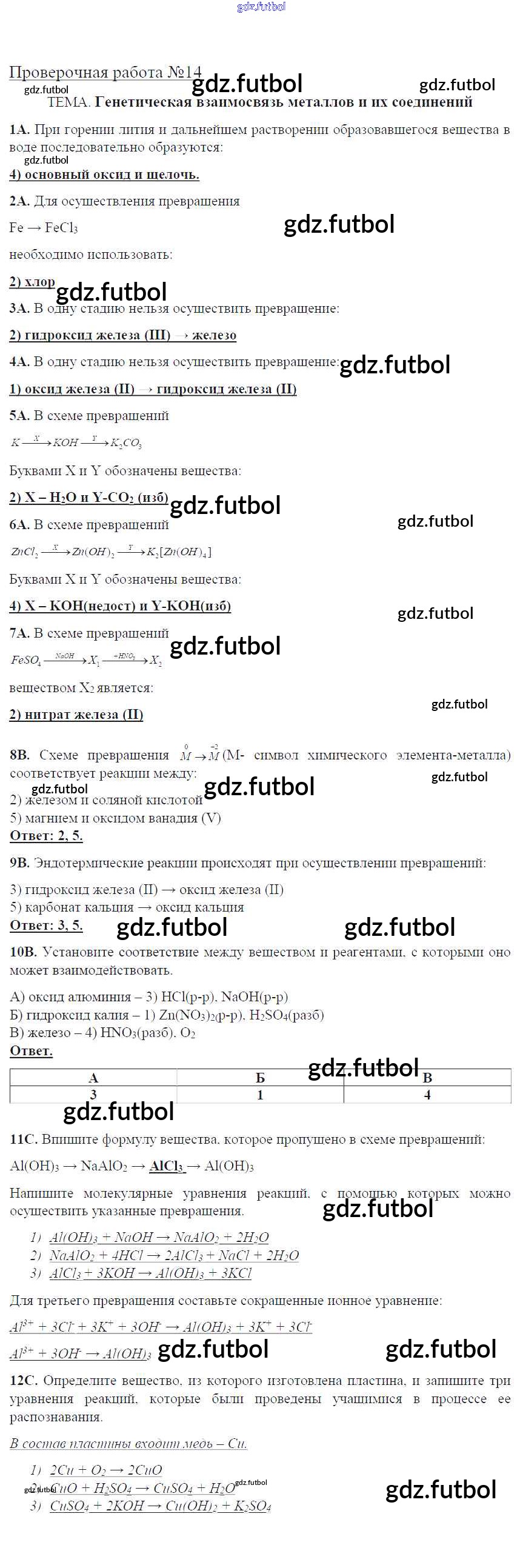 Готовые домашние задания по Химии за 9 класс Габриелян Тетрадь для оценки качества знаний Вертикаль 2017 ФГОС - Проверочные работы ПР-14. Генетическая взаимосвязь металлов и их соединений