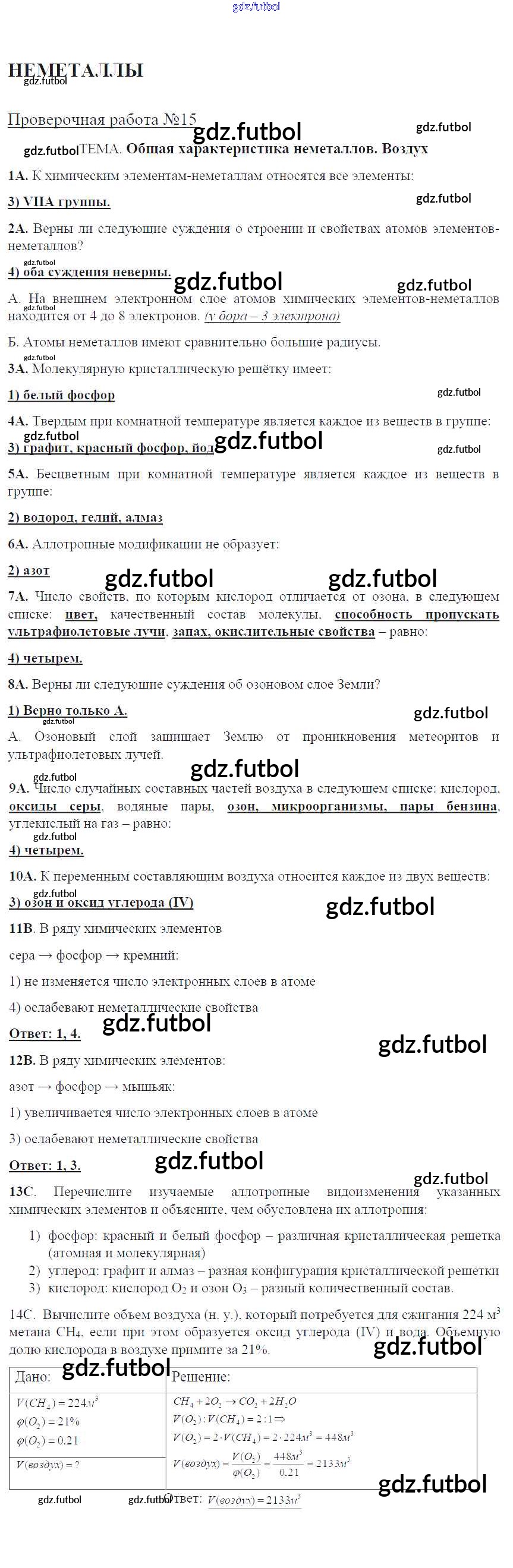 Готовые домашние задания по Химии за 9 класс Габриелян Тетрадь для оценки качества знаний Вертикаль 2017 ФГОС - Проверочные работы ПР-15. Общая характеристика неметаллов. Воздух