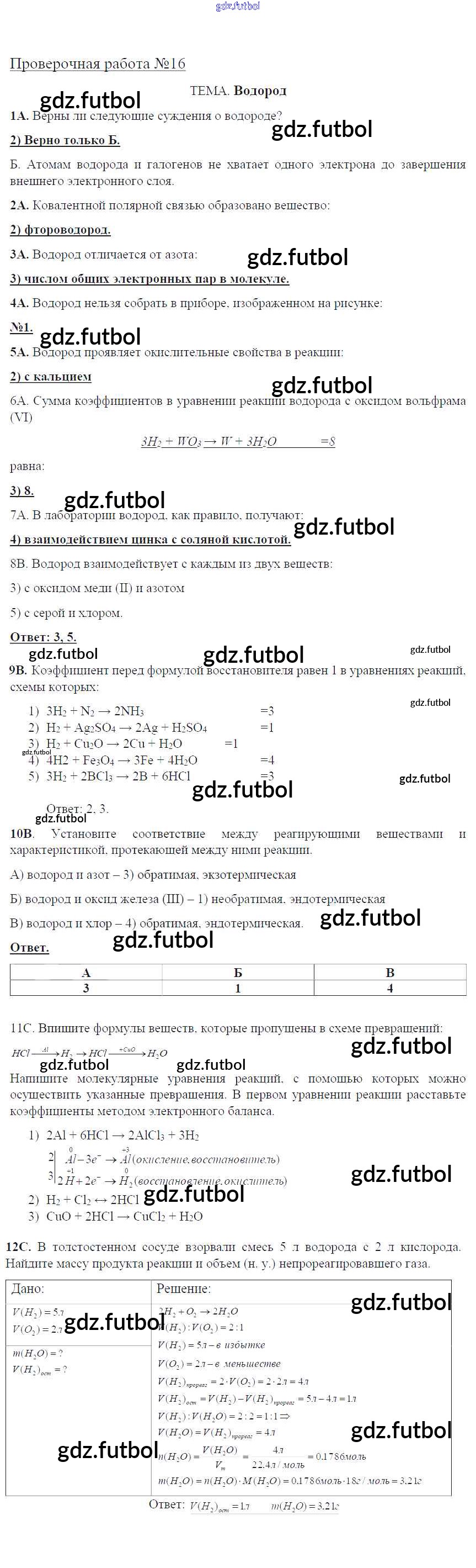 Готовые домашние задания по Химии за 9 класс Габриелян Тетрадь для оценки качества знаний Вертикаль 2017 ФГОС - Проверочные работы ПР-16. Водород