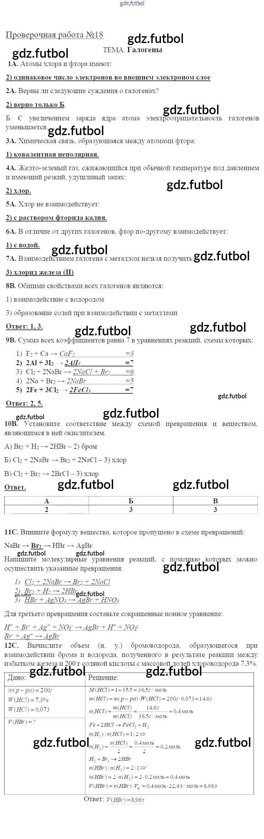 Готовые домашние задания по Химии за 9 класс Габриелян Тетрадь для оценки качества знаний Вертикаль 2017 ФГОС - Проверочные работы ПР-18. Галогены