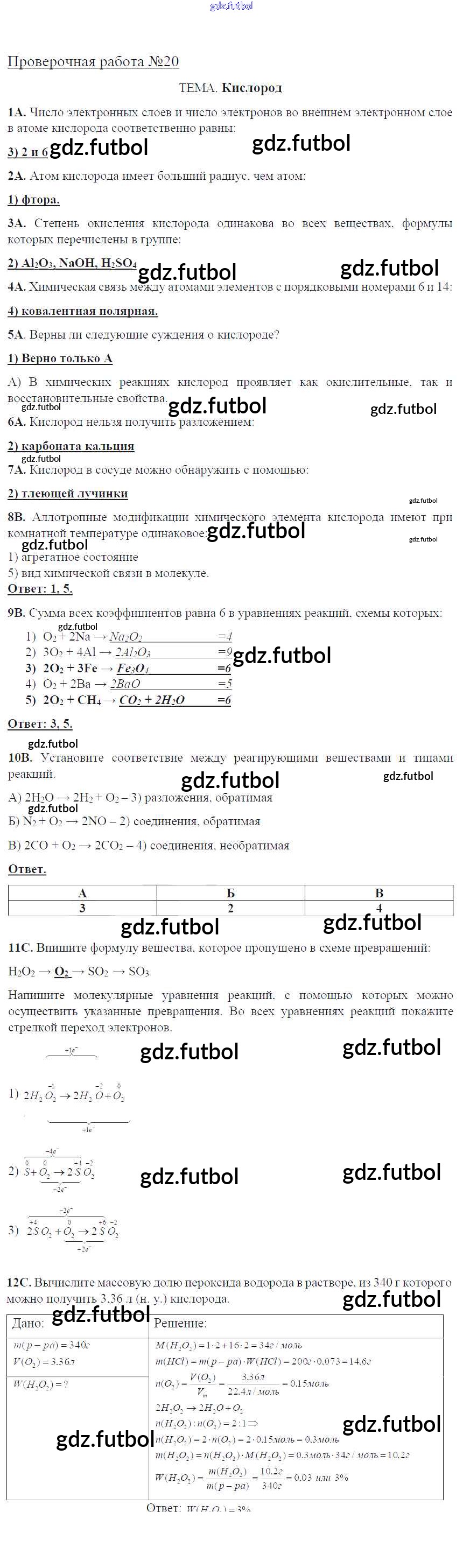 Готовые домашние задания по Химии за 9 класс Габриелян Тетрадь для оценки качества знаний Вертикаль 2017 ФГОС - Проверочные работы ПР-20. Кислород
