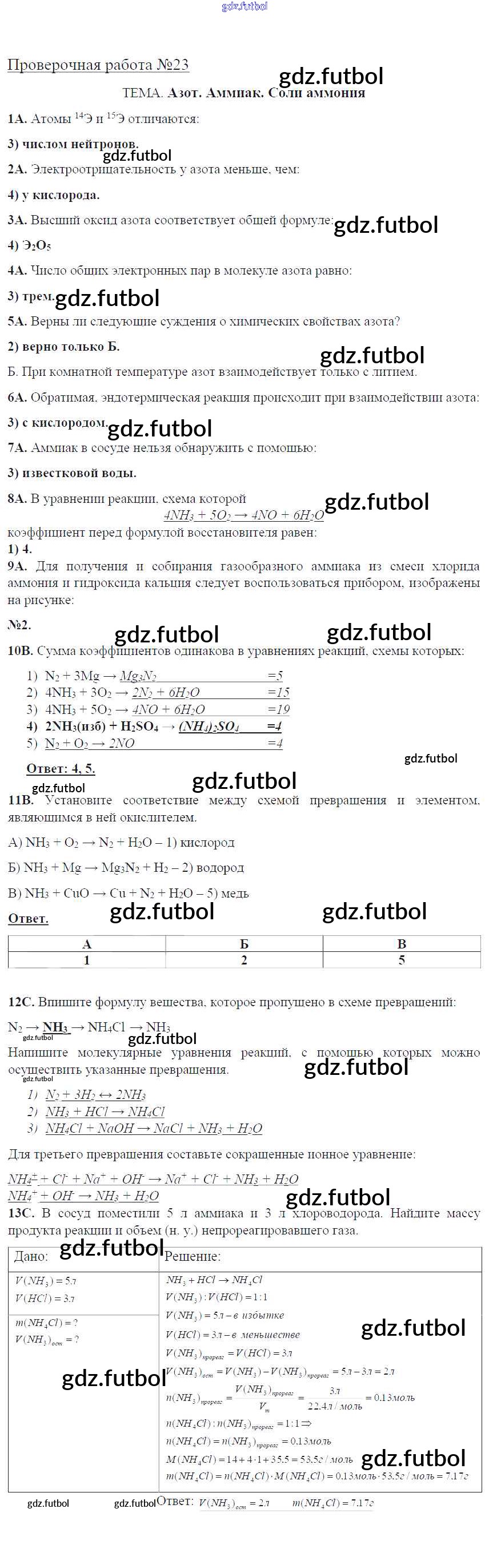 Готовые домашние задания по Химии за 9 класс Габриелян Тетрадь для оценки качества знаний Вертикаль 2017 ФГОС - Проверочные работы ПР-23. Азот. Аммиак. Соли аммония