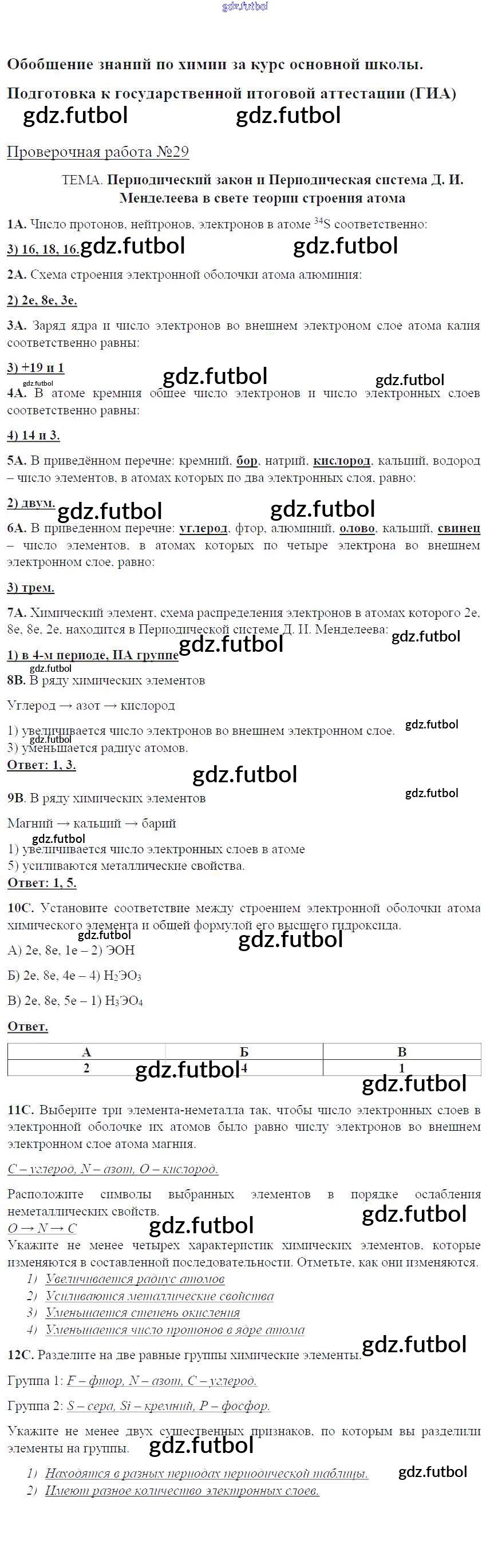 Готовые домашние задания по Химии за 9 класс Габриелян Тетрадь для оценки качества знаний Вертикаль 2017 ФГОС - Проверочные работы ПР-29. Периодический закон и система Менделеева в свете теории строения атома