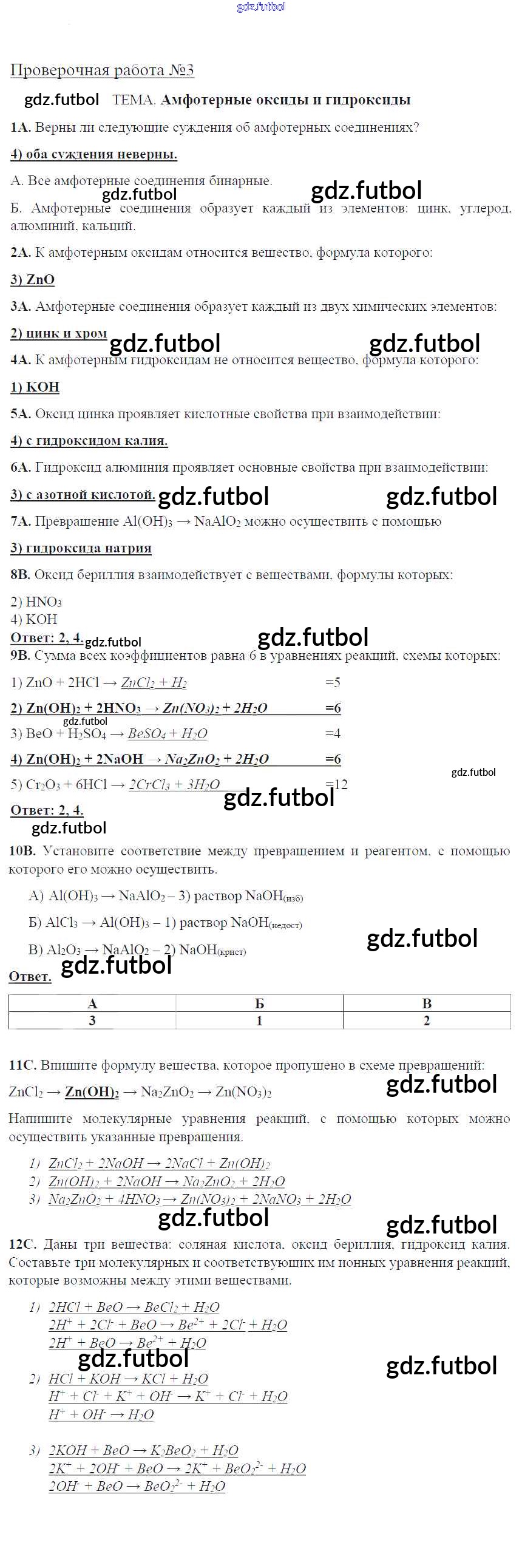 Готовые домашние задания по Химии за 9 класс Габриелян Тетрадь для оценки качества знаний Вертикаль 2017 ФГОС - Проверочные работы ПР-3. Амфотерные оксиды и гидроксиды