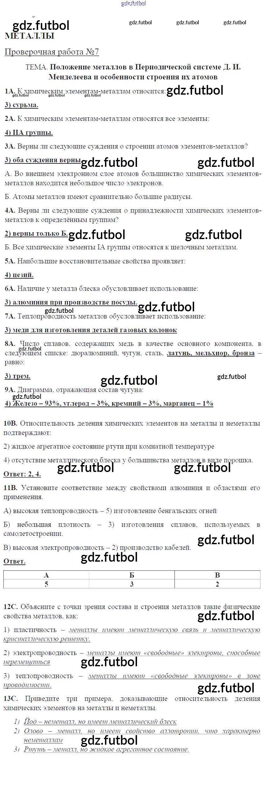 Готовые домашние задания по Химии за 9 класс Габриелян Тетрадь для оценки качества знаний Вертикаль 2017 ФГОС - Проверочные работы ПР-7. Положение металлов в Периолической системе и особенности строения их атомов