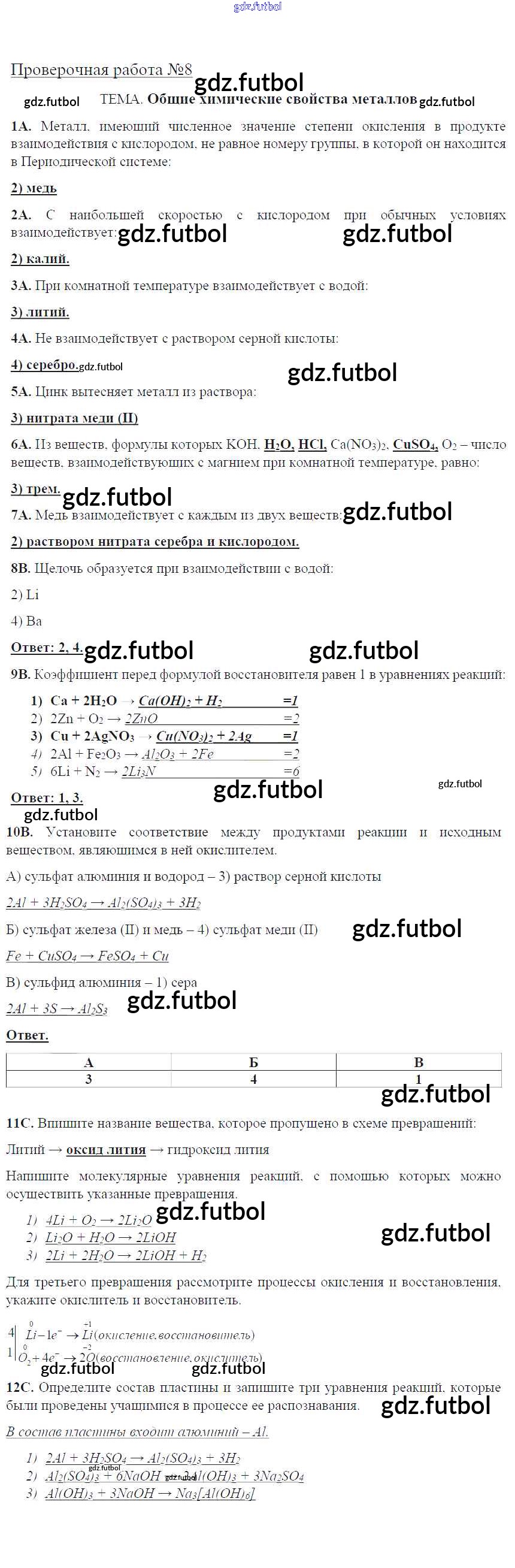 Готовые домашние задания по Химии за 9 класс Габриелян Тетрадь для оценки качества знаний Вертикаль 2017 ФГОС - Проверочные работы ПР-8. Общие химические свойства металлов
