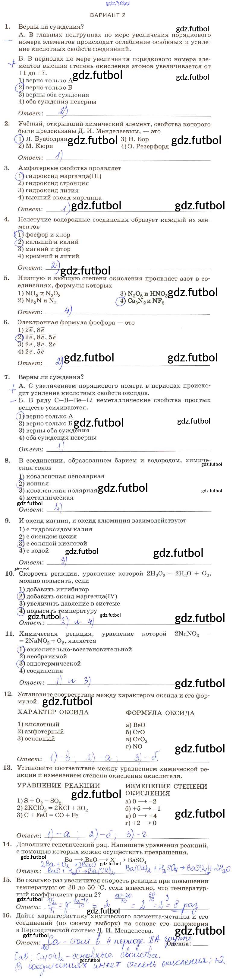 Готовые домашние задания по Химии за 9 класс Габриелян Контрольные работы Вертикаль 2013 ФГОС - КР-1 вариант-2