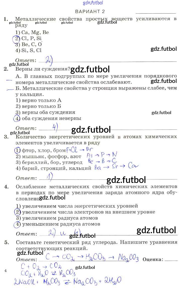 Готовые домашние задания по Химии за 9 класс Габриелян Контрольные работы Вертикаль 2013 ФГОС - ПР-1 вариант-2