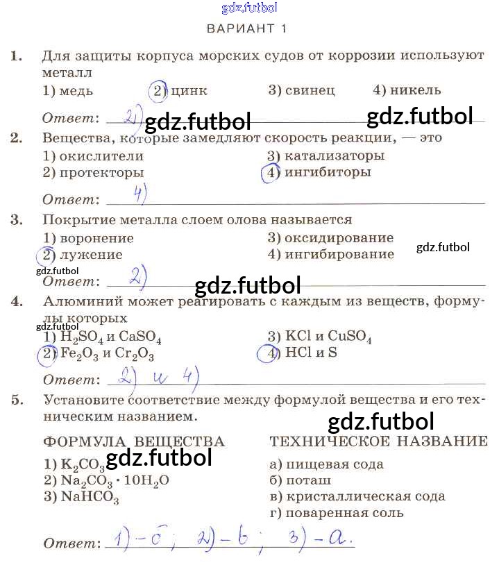 Готовые домашние задания по Химии за 9 класс Габриелян Контрольные работы Вертикаль 2013 ФГОС - ПР-10 вариант-1