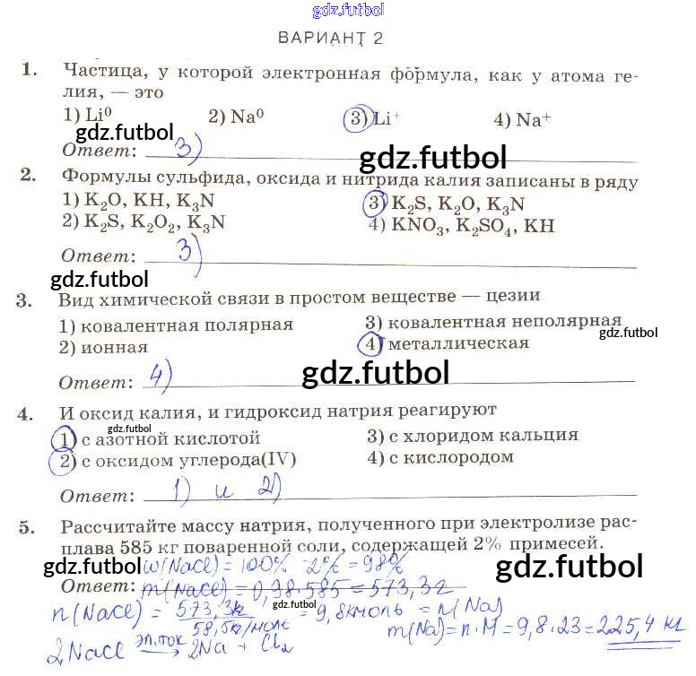 Готовые домашние задания по Химии за 9 класс Габриелян Контрольные работы Вертикаль 2013 ФГОС - ПР-11 вариант-2
