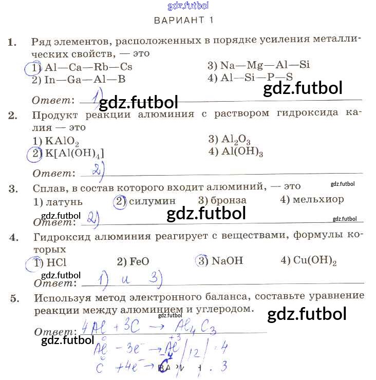 Готовые домашние задания по Химии за 9 класс Габриелян Контрольные работы Вертикаль 2013 ФГОС - ПР-13 вариант-1