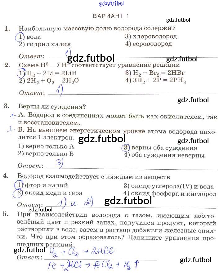 Готовые домашние задания по Химии за 9 класс Габриелян Контрольные работы Вертикаль 2013 ФГОС - ПР-16 вариант-1