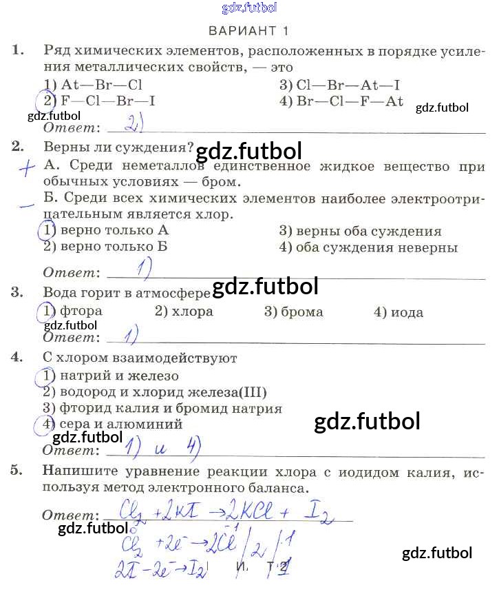 Готовые домашние задания по Химии за 9 класс Габриелян Контрольные работы Вертикаль 2013 ФГОС - ПР-18 вариант-1