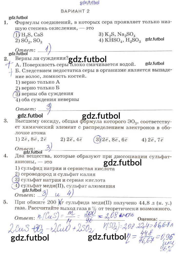 Готовые домашние задания по Химии за 9 класс Габриелян Контрольные работы Вертикаль 2013 ФГОС - ПР-21 вариант-2