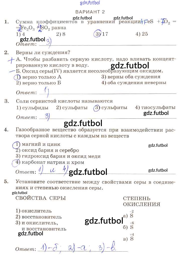 Готовые домашние задания по Химии за 9 класс Габриелян Контрольные работы Вертикаль 2013 ФГОС - ПР-22 вариант-2