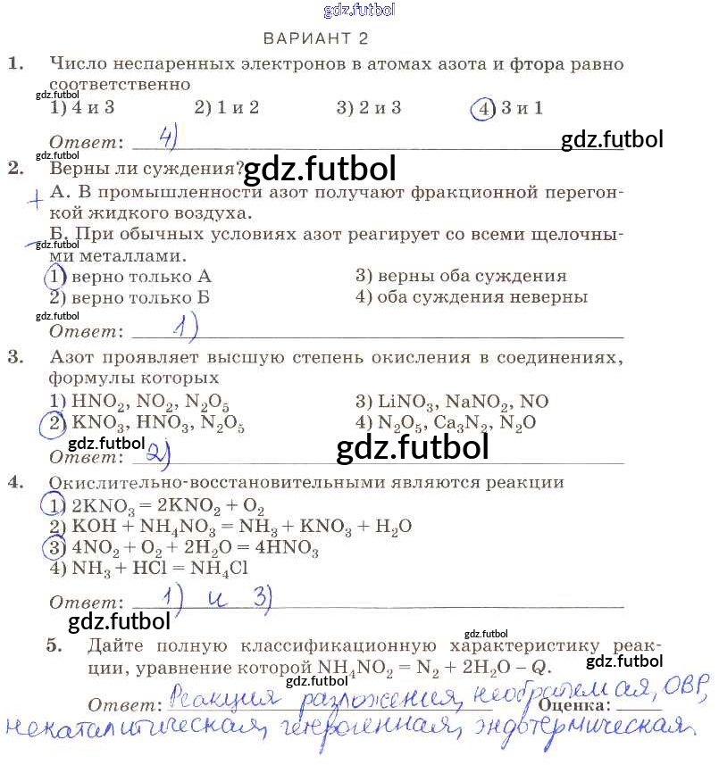 Готовые домашние задания по Химии за 9 класс Габриелян Контрольные работы Вертикаль 2013 ФГОС - ПР-23 вариант-2