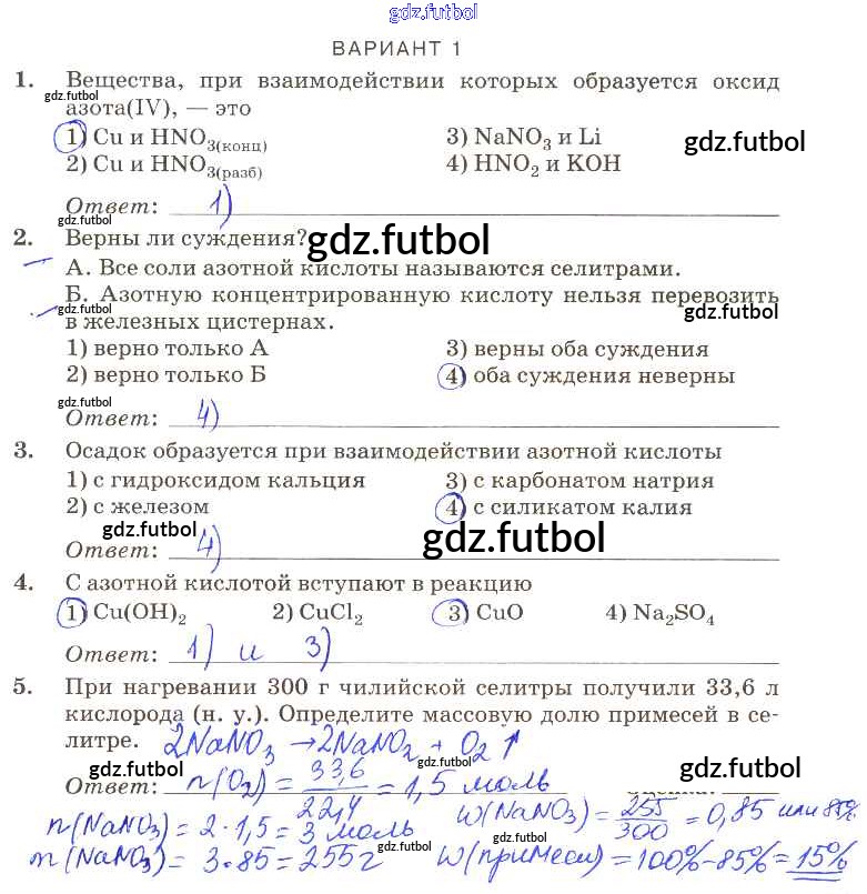 Готовые домашние задания по Химии за 9 класс Габриелян Контрольные работы Вертикаль 2013 ФГОС - ПР-26 вариант-1