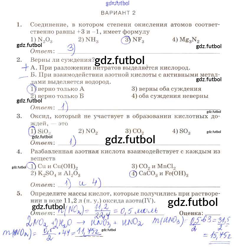 Готовые домашние задания по Химии за 9 класс Габриелян Контрольные работы Вертикаль 2013 ФГОС - ПР-26 вариант-2