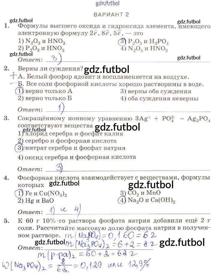 Готовые домашние задания по Химии за 9 класс Габриелян Контрольные работы Вертикаль 2013 ФГОС - ПР-27 вариант-2