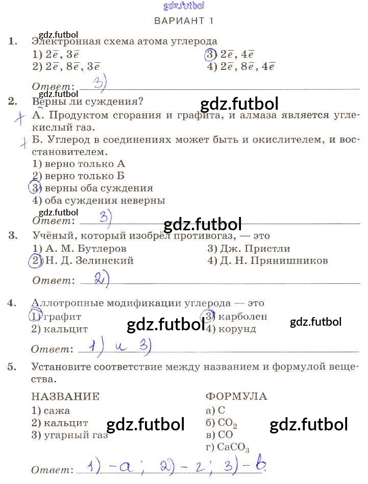 Готовые домашние задания по Химии за 9 класс Габриелян Контрольные работы Вертикаль 2013 ФГОС - ПР-28 вариант-1