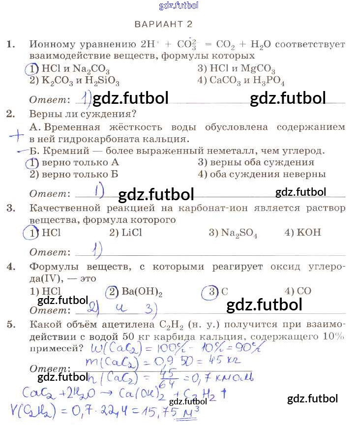 Готовые домашние задания по Химии за 9 класс Габриелян Контрольные работы Вертикаль 2013 ФГОС - ПР-29 вариант-2