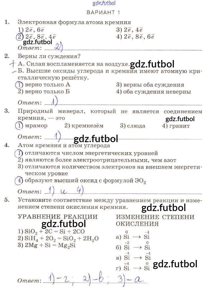 Готовые домашние задания по Химии за 9 класс Габриелян Контрольные работы Вертикаль 2013 ФГОС - ПР-30 вариант-1