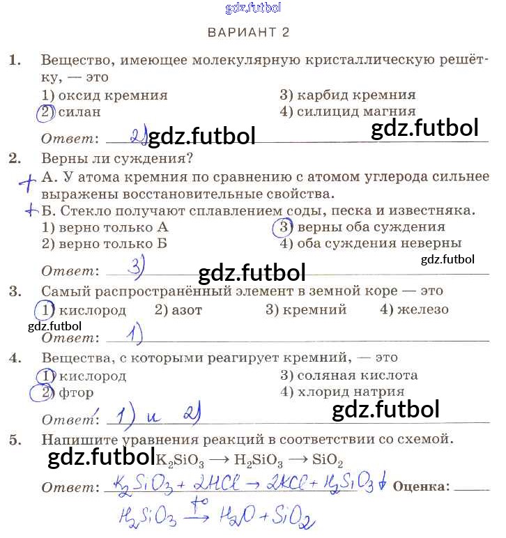 Готовые домашние задания по Химии за 9 класс Габриелян Контрольные работы Вертикаль 2013 ФГОС - ПР-30 вариант-2