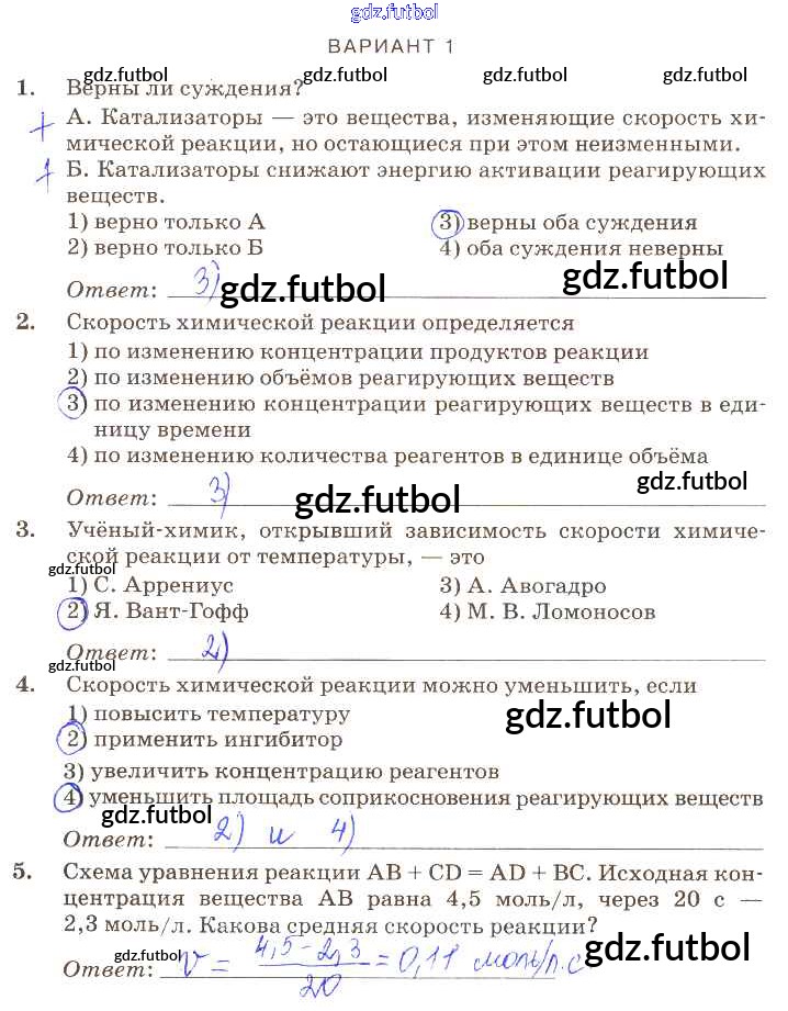 Готовые домашние задания по Химии за 9 класс Габриелян Контрольные работы Вертикаль 2013 ФГОС - ПР-5 вариант-1