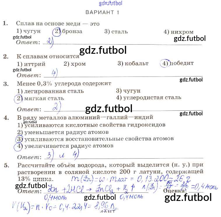 Готовые домашние задания по Химии за 9 класс Габриелян Контрольные работы Вертикаль 2013 ФГОС - ПР-7 вариант-1