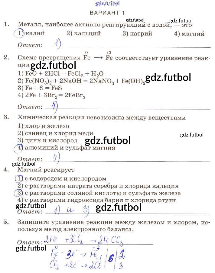 Готовые домашние задания по Химии за 9 класс Габриелян Контрольные работы Вертикаль 2013 ФГОС - ПР-8 вариант-1