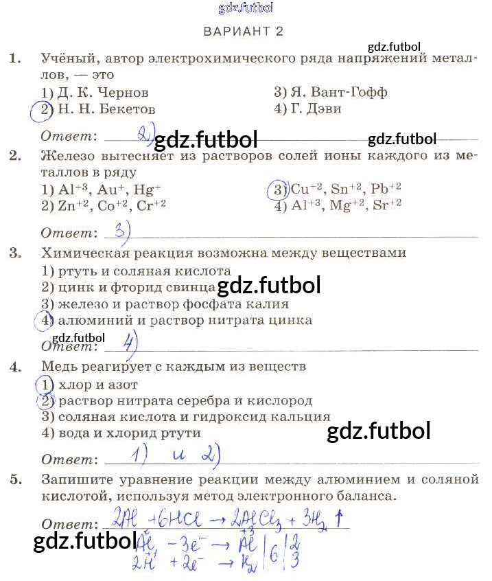 Готовые домашние задания по Химии за 9 класс Габриелян Контрольные работы Вертикаль 2013 ФГОС - ПР-8 вариант-2